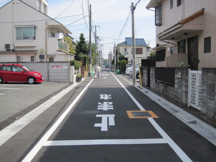 一見何の変哲もない普通の道路ですが、舗装をきれいにして白線を引きなおす際に、歩道が広くなる