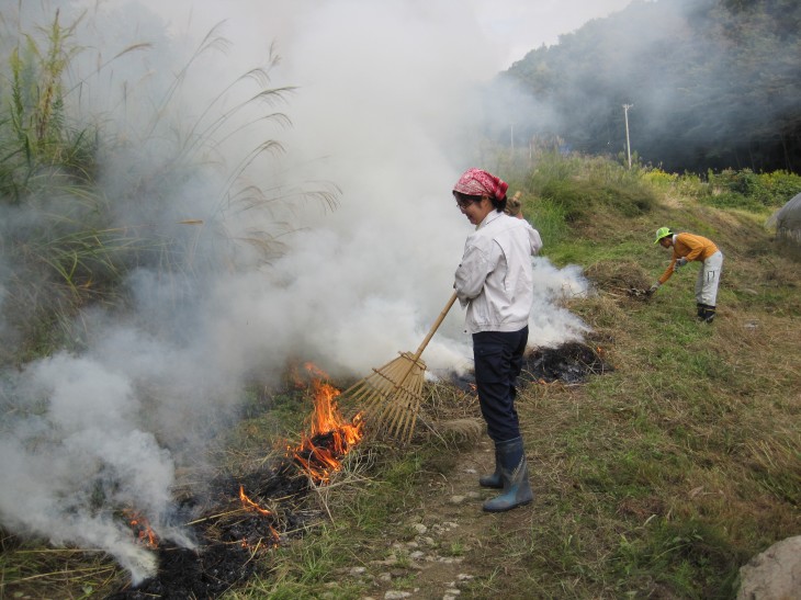 前に刈った草がある程度乾いていたので、焼いて処理しました。