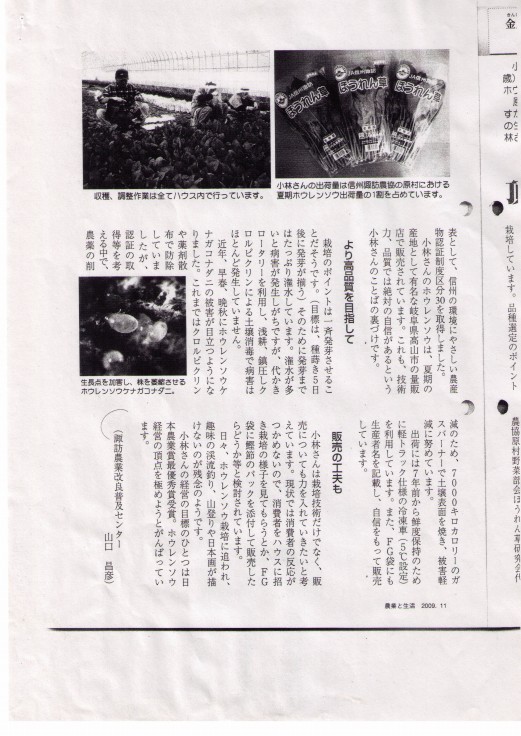 昨日はホウレンソウ専門に作っている原村の農家さん、小林金茂さんの畑を視察