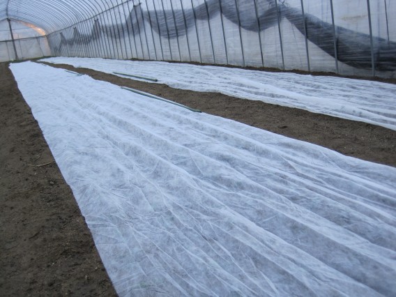 まずはふわふわ。1ハウスまるごと被覆してみました。ここは特に冬場の日照時間が短く、気温・