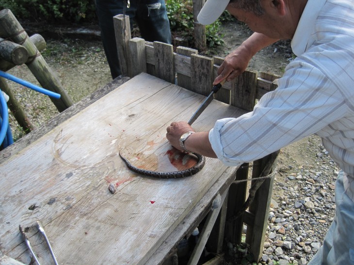 嬉しそうにマムシを捌く笑顔が印象的でした(汗