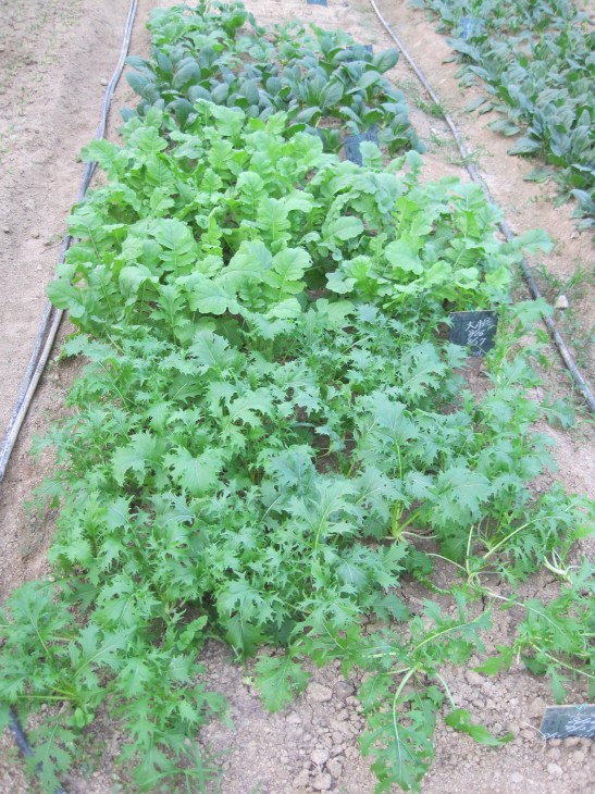 上から順番に、水菜、小松菜、聖護院大根、カブ・・・