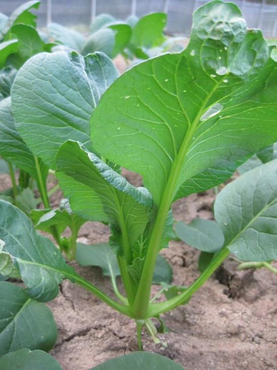 先月試験で蒔いた聖護院大根、カブ、小松菜、水菜がこの1週間留守にしている間にかなり伸びて
