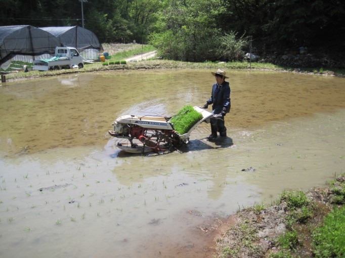 協力隊と田んぼを貸してくれている方と共に、田植えをしました。