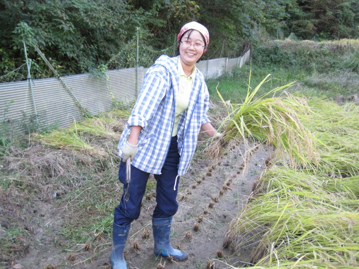 昨日は農家さんの稲刈りのお手伝い。去年は稲刈りは出来ず、はざかけだけの作業でしたが、