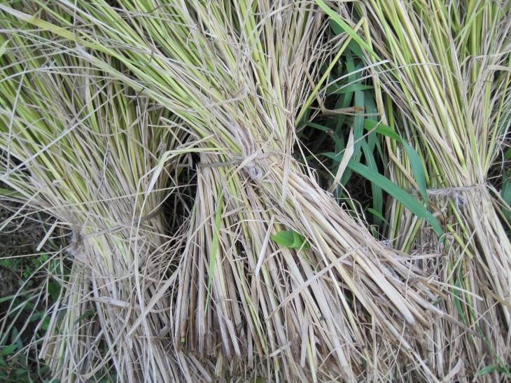 この田んぼは湿気が多く乾きにくいので、他の場所へ移動させてはざをかけるのです。