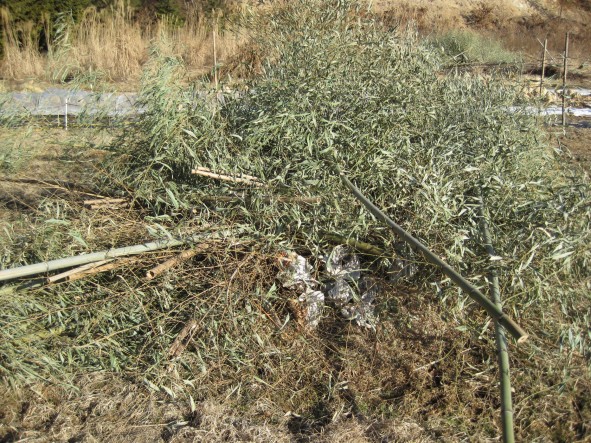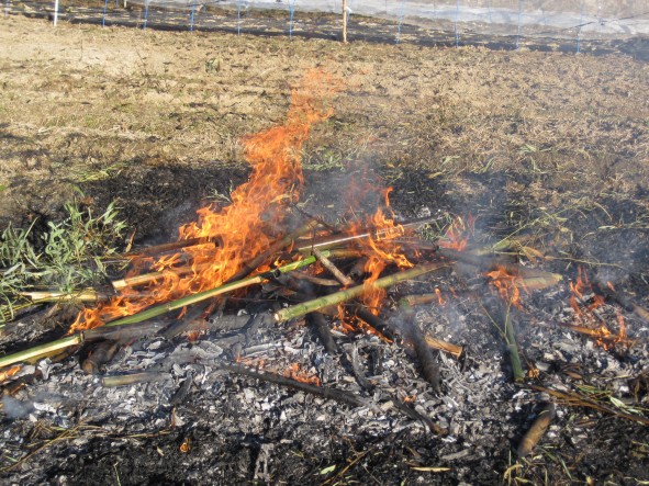 正月に行われるどんど焼きで竹を結いてこんな感じで燃やしますが、その後に花いっぱい運動で