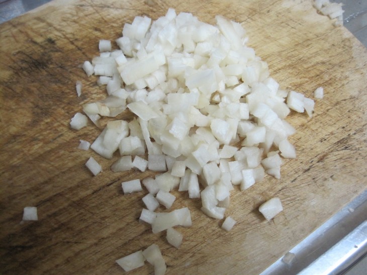 洗って、皮を剥いて、タマネギのようにみじん切りに。