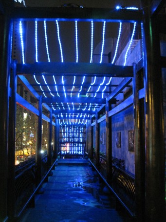 外装。謎の青い電飾。