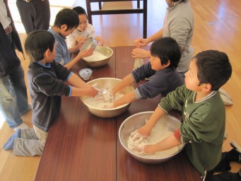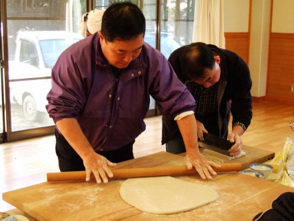 子どもはもちろん、大人もほとんどそば打ち初体験。(自分はこっちに来てから3回目)