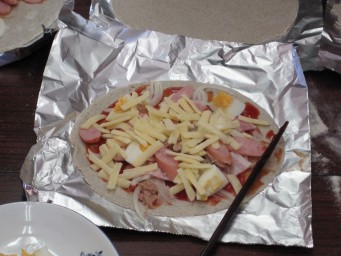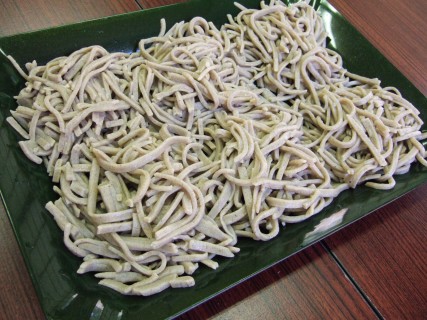 先にピザが出来て食べている間にかやかやそばを茹でて茹でて・・・完成!