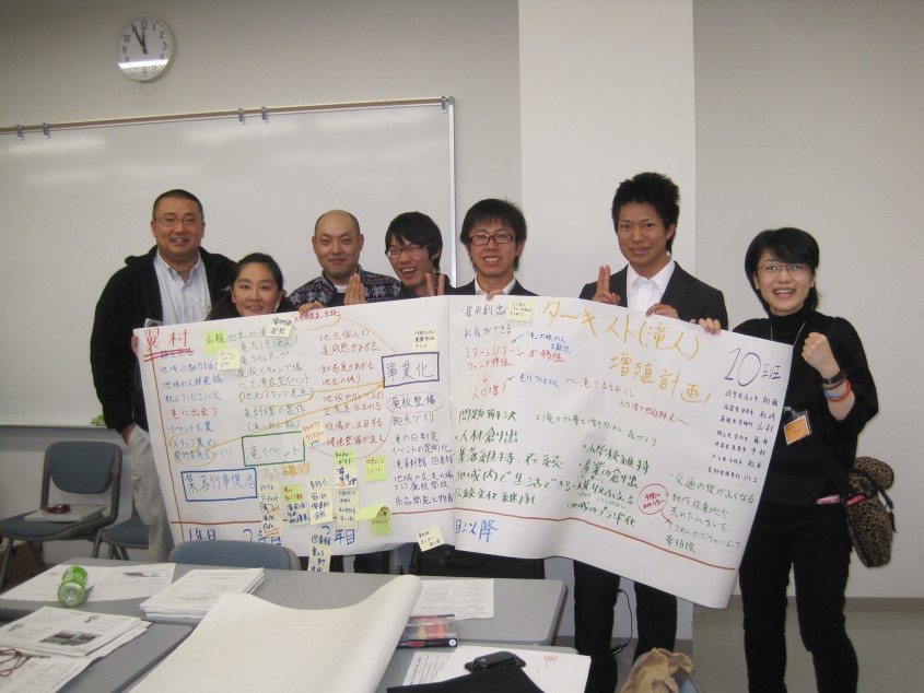 (研修中の写真撮影等は禁止されていたので、グループワークの最後に記念に撮った写真です。発表会で一番盛り上がったチームでした^^)