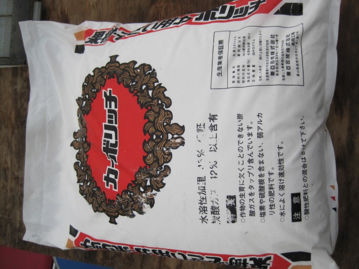 ソイルブロックに混ぜて使います。ようはカリ分の塊みたいなものです。N・P・K(窒素・リン・カリ)の