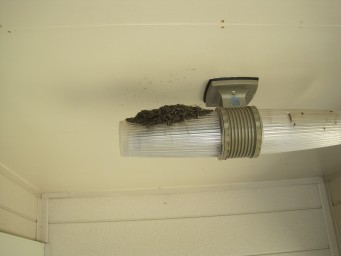 いったん細かい砂やごみをパイプ内から出すために通水させて、その後先端を縛ります。