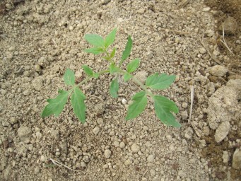 トマトが熟れて地面に落下し、果実が発酵して種子が発芽できる条件が整えば、その養分を利用して発芽してくる。