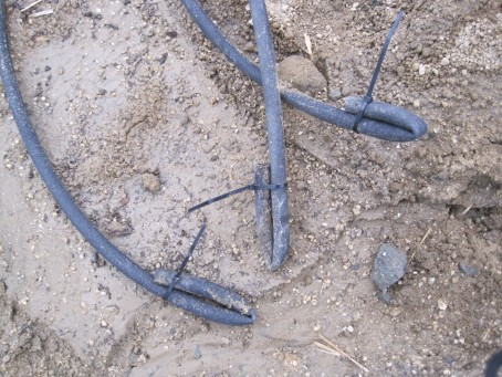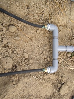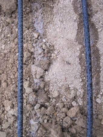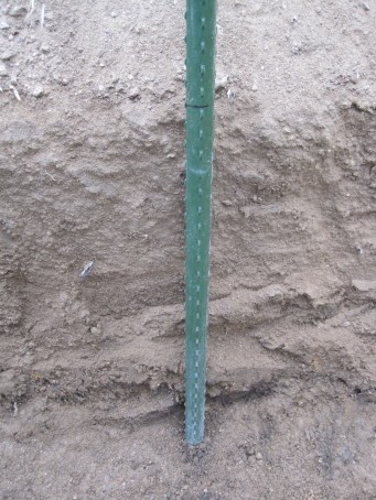 埋けるパイプは「リーキパイプ」という、通常の潅水チューブとは違って、パイプ全部から水がしみ出る