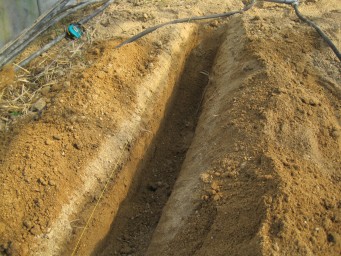 鍬で溝を掘りました。その深さ40cm。実際やってみて、40cmがいかに深いか、ということを