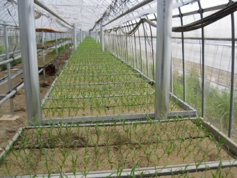 扇風機の風(ハウスの中の温度を均一にするために使っている)とであっという間に床土が