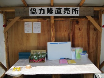 そして、直に協力隊直売所ののぼり旗が完成します!緑のふるさと協力隊に協力いただいて