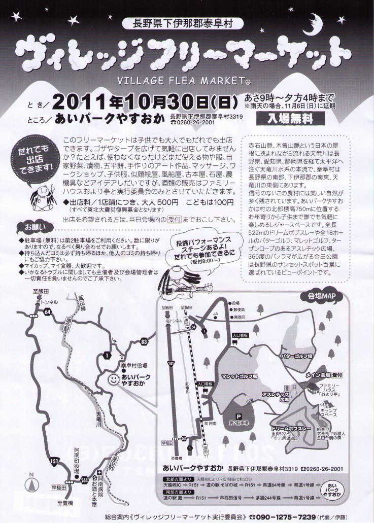 泰阜村で10月30日(日)にやすおか村蚤の市「ヴィレッジ フリーマッケット」を開催するそうです。