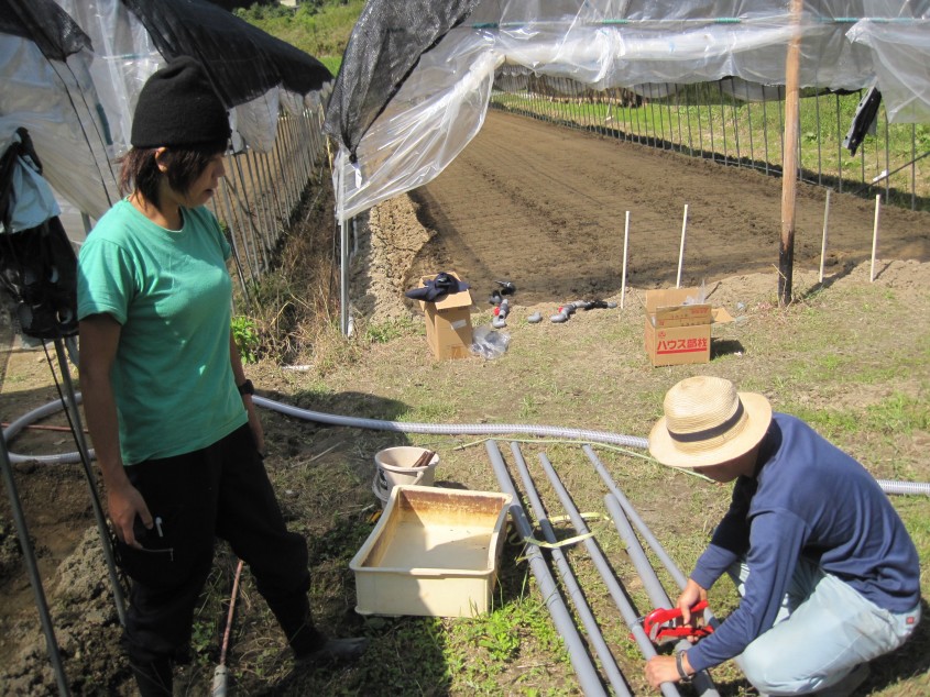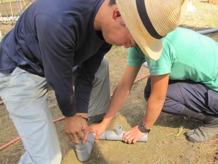 協力隊自ら配管等施工を行いました。岩上さんの経験がフル活用されました!