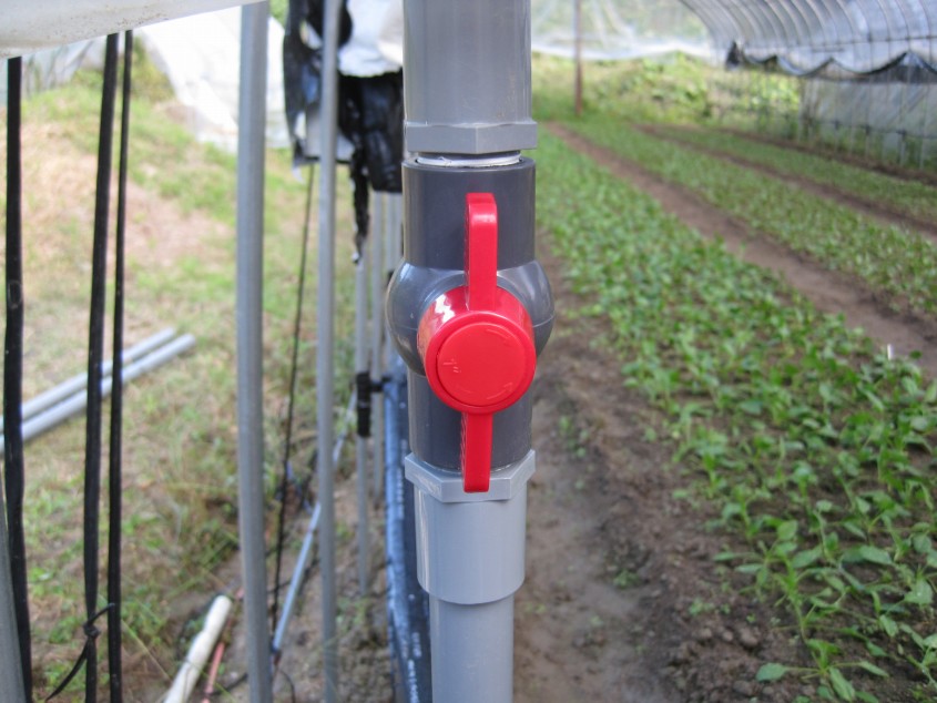 今日、この潅水負担を軽減するために試験として短いハウス1ハウスの潅水を半自動潅水化