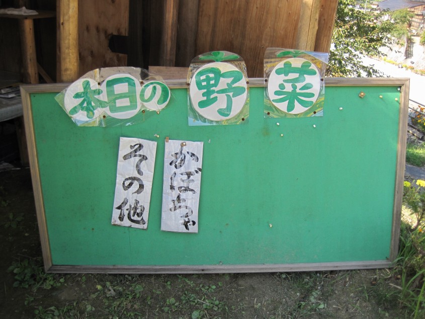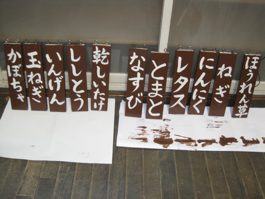 という村の方の要望によって、道路から見えるおしながきを作りました。
