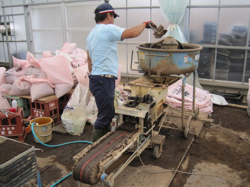 います。作る苗箱の量がとても多いので、作業効率を図っていることが至る所で見受けられました。