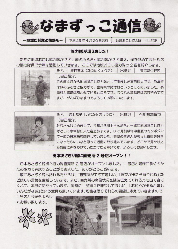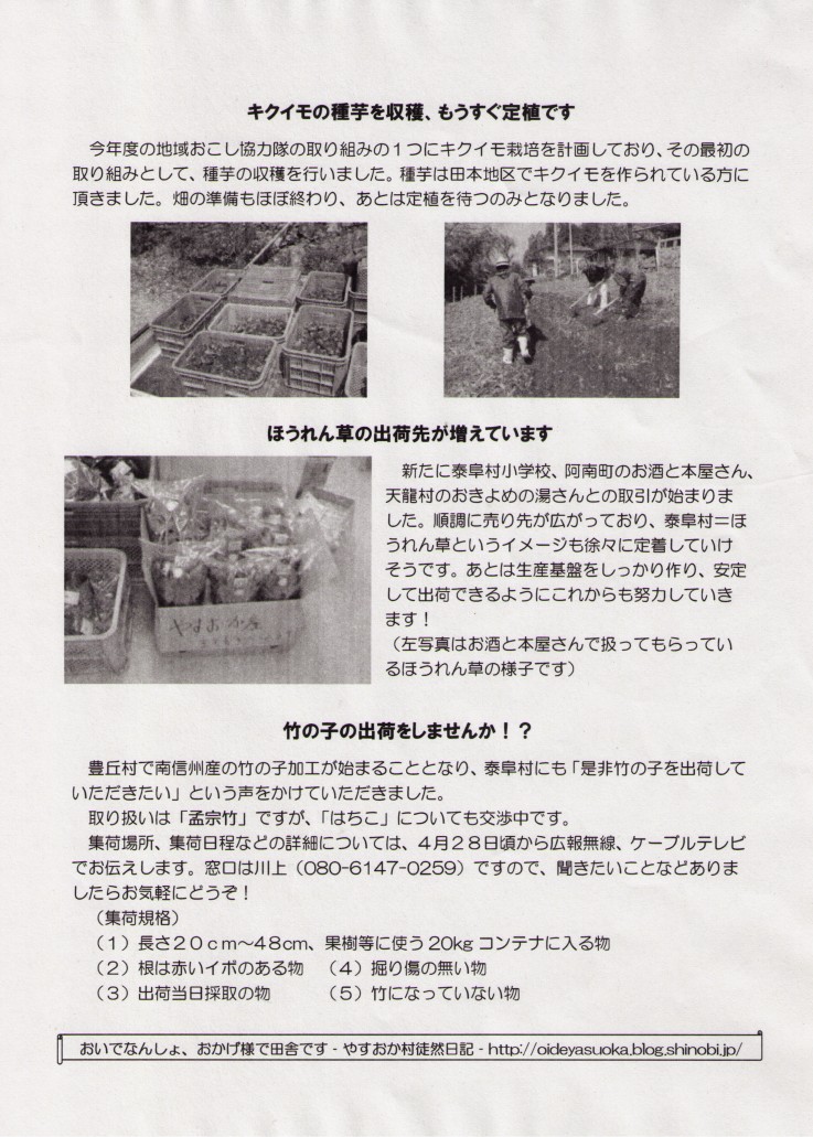 その名も「今日もまめだに泰阜村~18期緑のふるさと協力隊~」