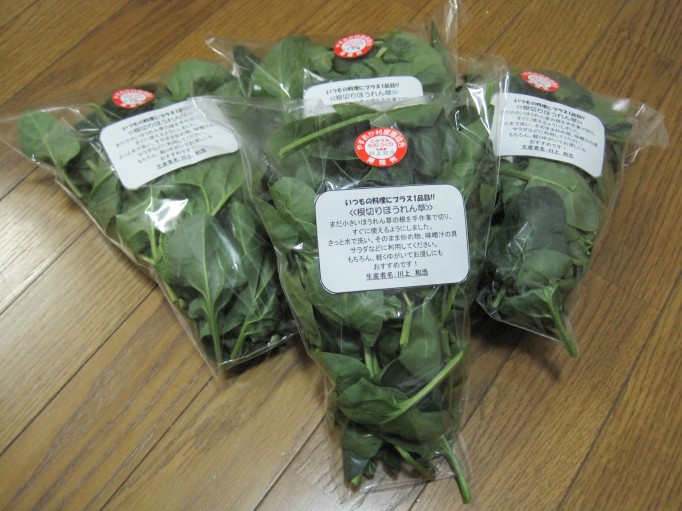 収穫したほうれん草の中には、まだ背丈の低いほうれん草が多くあり、普通に袋詰めしてしまう