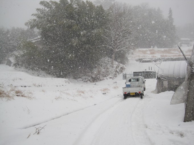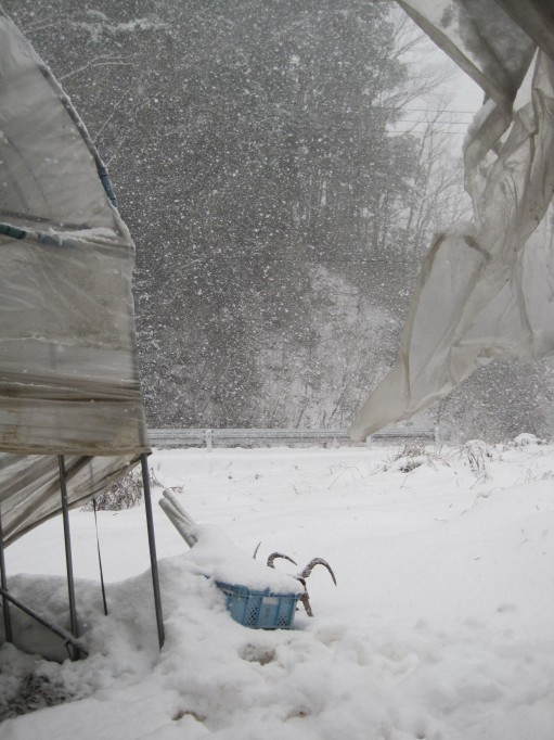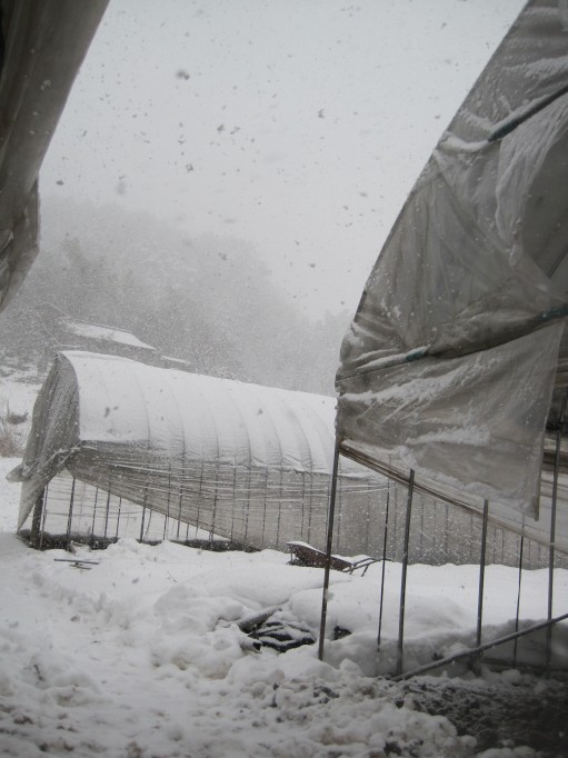 昨日、ハウス周りの雪かき(裾が上げられないので、上がるように雪を取り除いていた)をしながら、