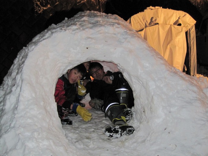作業後、家に帰ると子供たちがかまくら作りの真っ最中。お兄さんも混じって、15年ぶり位に