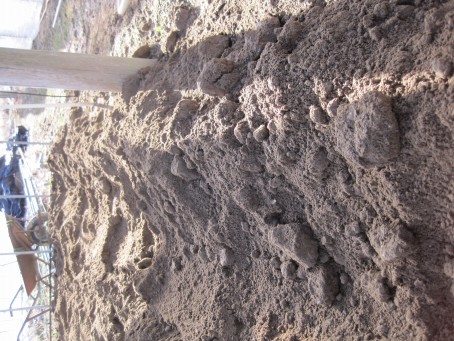 鉄の支柱を差したところ、まだそこは1m~1.5mはありそう。どこまで掘っていいものかわからない