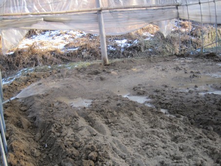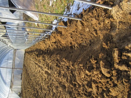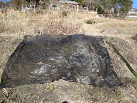 しまっています。(写真はある程度泥を取り除き、遮光ネットの端を出したときのもの)