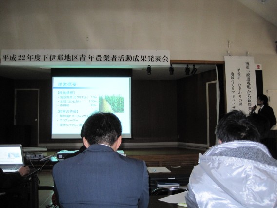 午後、飯田で開催された「下伊那地区青年農業者成果発表会」に参加してきました。