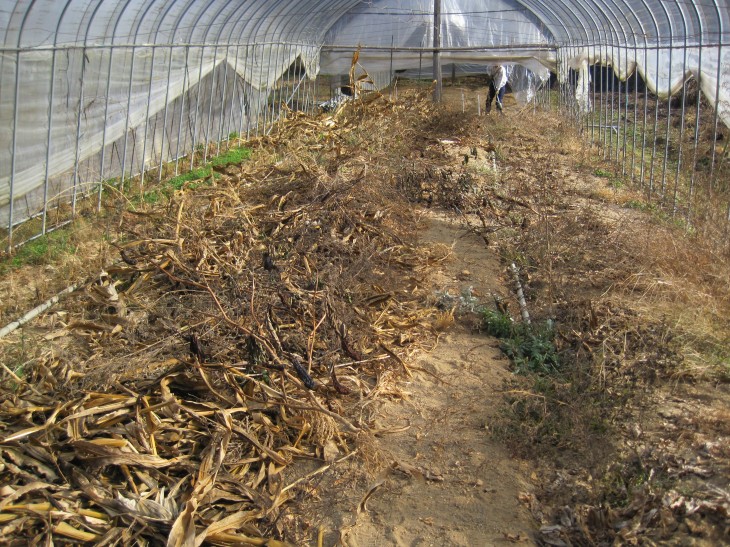 1ハウスだけとうもろこしとナスがそのまま放置されていたので、ついにそのハウスに手をつけることが