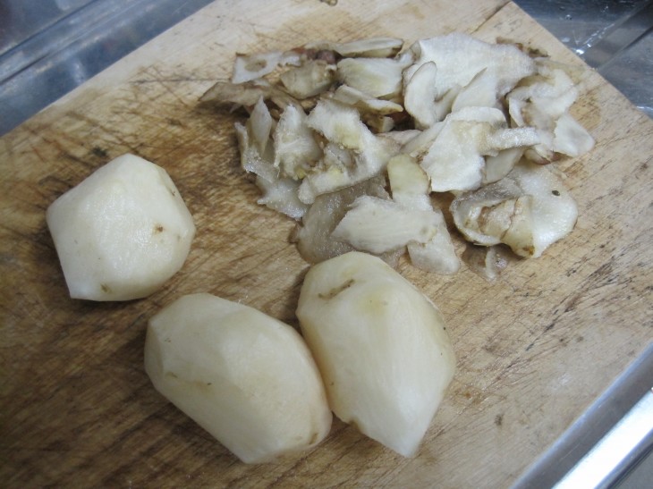 洗って、皮を剥いて、タマネギのようにみじん切りに。