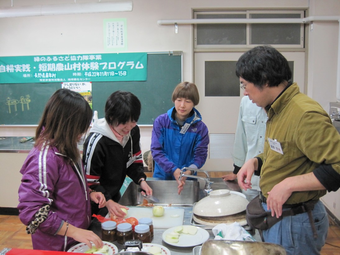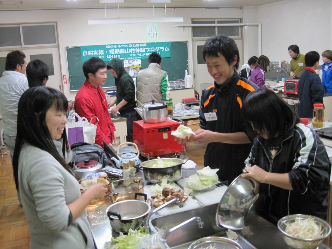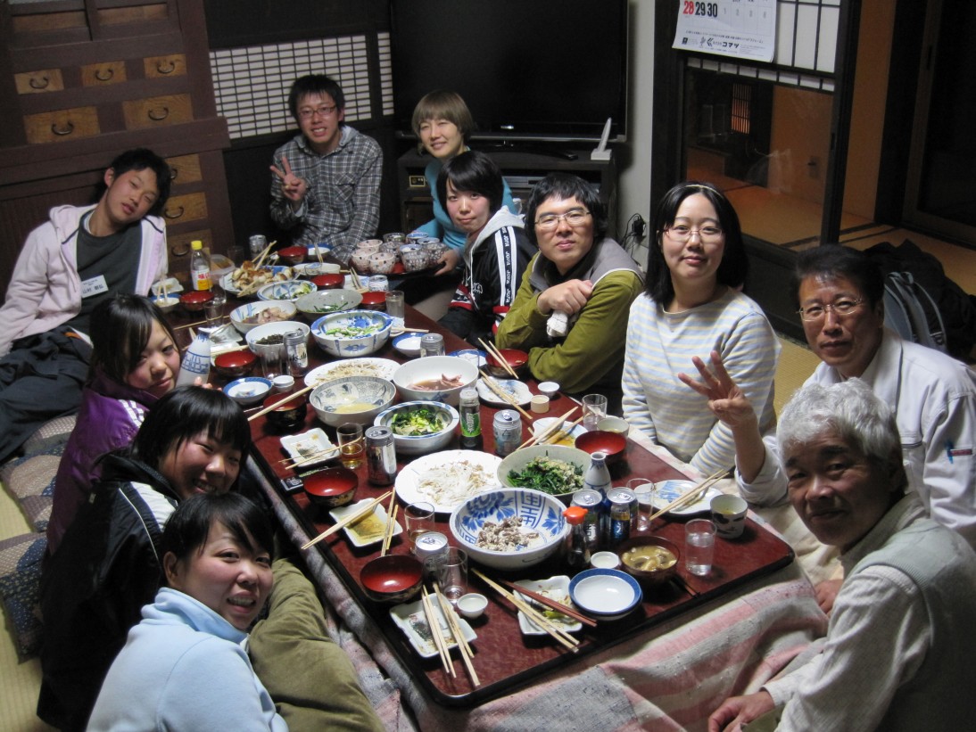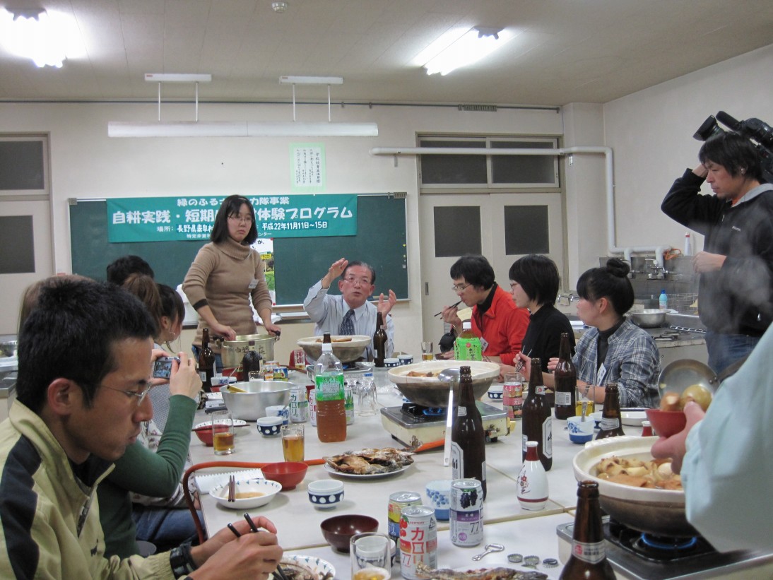 夜は短期農山村体験プログラムで来ている人たちと食事をしました。