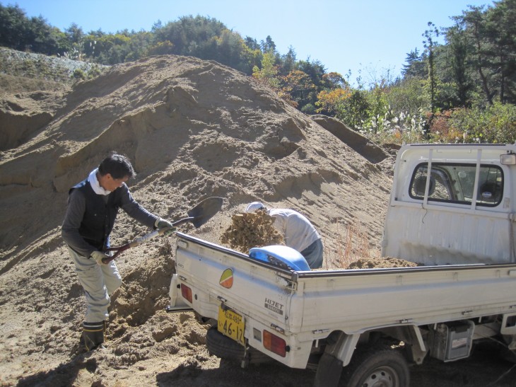 5日は播種のあと、培土に使っているミネラル化石と山砂を取りに男4人で行きました。