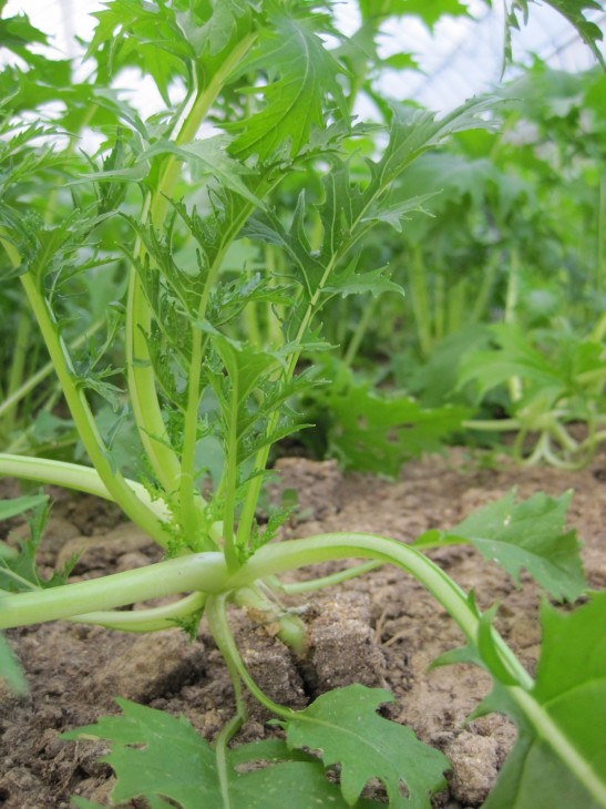 日の光にあたり、なんだか神秘的な雰囲気をかもし出すホウレンソウ達。幻想的ー