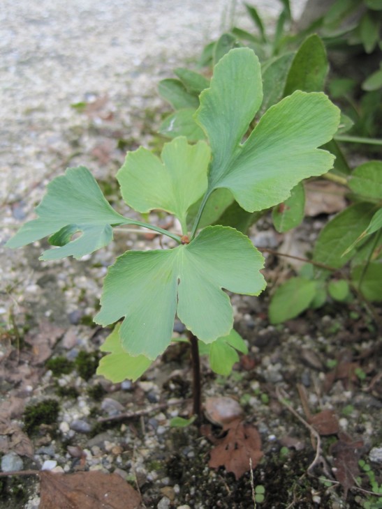 職員室のすぐ前にどこからか転がってきたイチョウの種(銀杏)が芽を出していました。