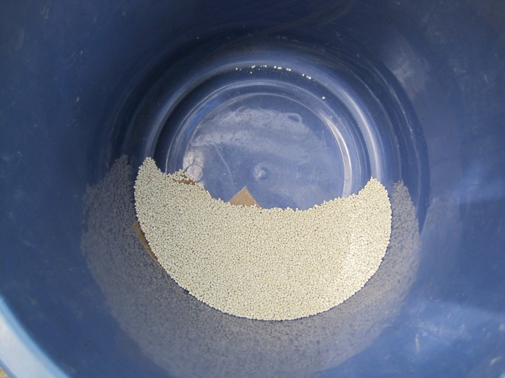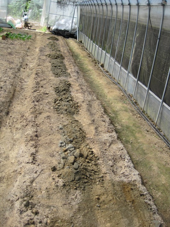 1畝あたり9袋(約90kg)を入れ、耕耘機でかっからしました。