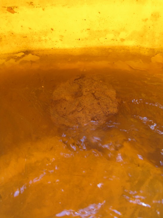 一度タンクに溜めてから使うのですが、そのタンク内にも大きな化石をどんどん入れて水に