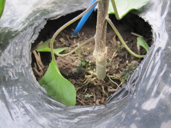 すくも土を使ったものでさえ、やや深い。白い部分が長いほど地上部に出るまでに時間と労力を消費して