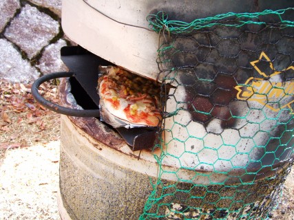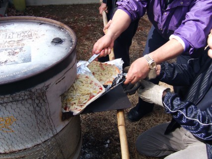 ついでに、ドラム缶でオーブンも作成。当日は、ピザと蕎麦との2本立てで行く作戦を立てました。