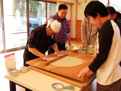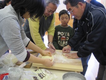 子どもはもちろん、大人もほとんどそば打ち初体験。(自分はこっちに来てから3回目)