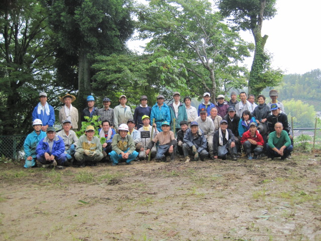 植樹したのは、ツツジ、サクラ、キンモクセイ。中部電力からの寄贈で、関係者の方にもお手伝いしてもらいました。