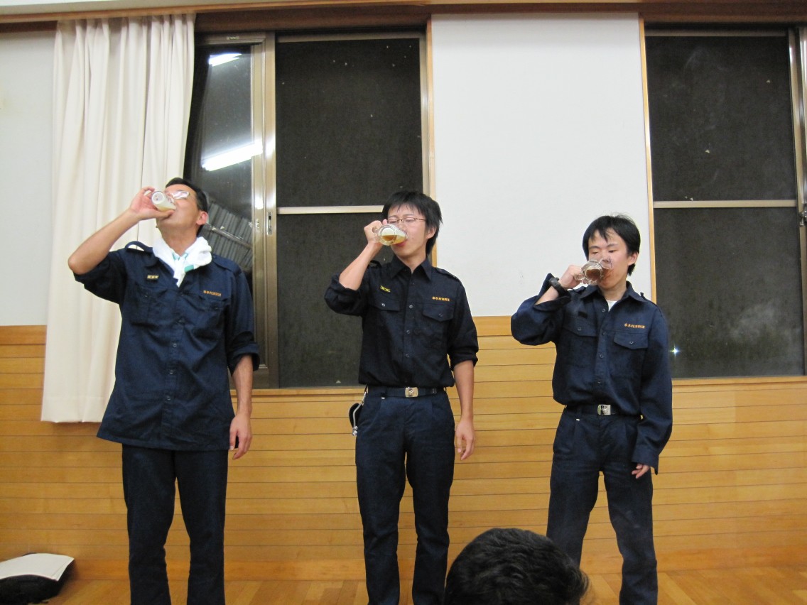 で、消防といえば、飲み会なわけです。技術大会ともなれば結構飲むわけです。(普段の練習のときから飲んでいる気もしますが)