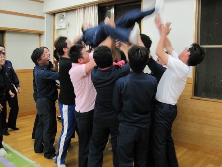宴もたけなわ、胴上げも始まりました。もう何でもありです。