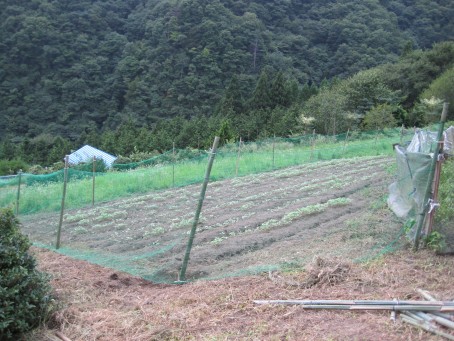 ←漆平野 ネット張り直後。支柱の竹は友達が来たときに切ってもらった。